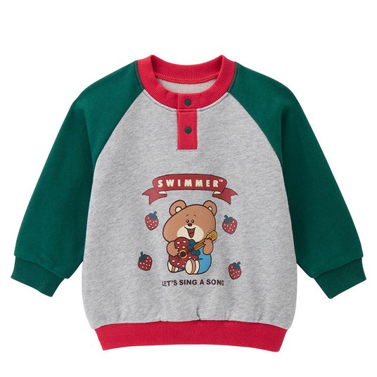 ■配色ラグランプリント裏毛スウェット:2,490円(税込)ユニセックスで着用可能な色合いがかわいい、配色ラグランプリント裏毛スウェットが新発売!