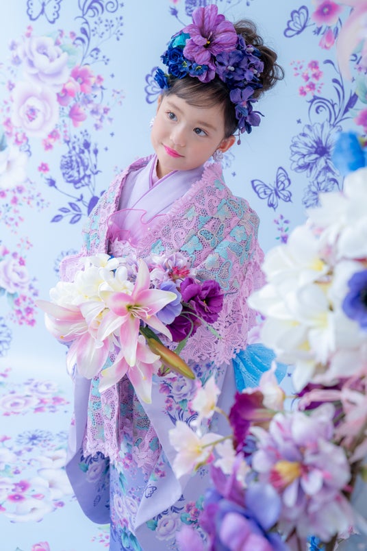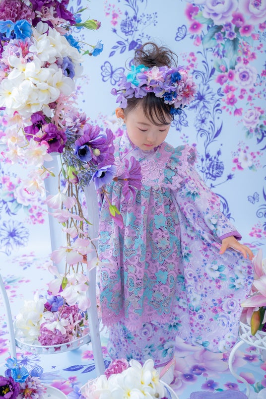 第一弾の「Misty Violetta(ミスティ ヴィオレッタ)」に続く特別企画であり、「LOVST PHOTO STUDIO」のためだけにデザインされた世界で唯一の着物コレクションです。お子さまの特別な一日をより印象的に彩ります。