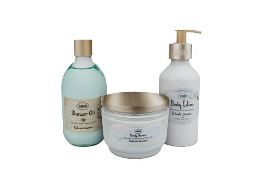 シャワーオイルでやさしく汚れを落とし、肌をやわらかく洗い上げたあと、ボディスクラブでなめらかなつや肌に磨き上げ、仕上げにモイスチャライザーで深い潤いを与えて。