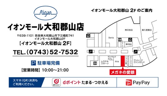 店舗名 :メガネの愛眼 イオンモール大和郡山店オープン日:2025年11月14日(金)