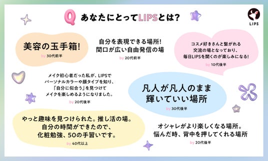 今回のアンケート調査では、LIPSはどういう存在か聞いてみたところ、「凡人が凡人のまま輝いていい場所」「かわいいを諦めない場所」といったエモーショナルな声が多数寄せられており、LIPSが単なるサービスを超えた「心の拠り所」になっていることが分かります。