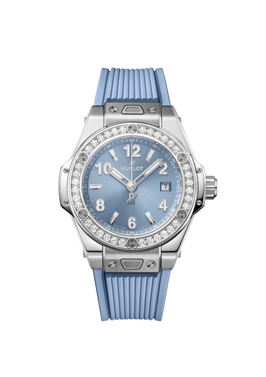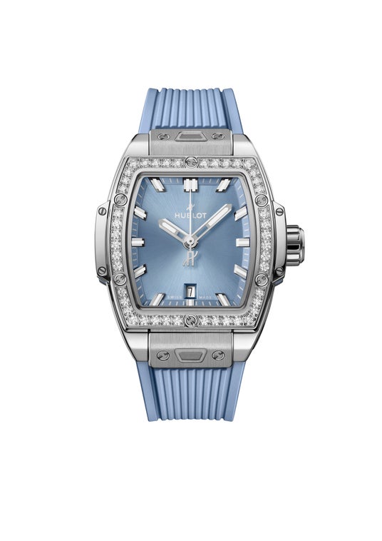 「ビッグ・バン ワンクリック」33mmと「スピリット オブ ビッグ・バン」32mmのステンレススチールケースには、繊細な輝きを放つサンレイ仕上げのコールブルーダイアルを組み合わせています。そして、ベゼルにダイヤモンドをセッティングすることで、コールブルーの鉱物的特性を反映しています。「ビッグ・バン ワンクリック」は36個、「スピリット オブ ビッグ・バン」32mmには44個のダイヤモンドがセッティングされています。全てのダイヤモンドは、最高水準の倫理基準を保証するRJC(責任あるジュエリー協議会)とキンバリー・プロセスの二重認証を取得しています。「ビッグ・バン ワンクリック」は合計約0.76カラット、「スピリット オブ ビッグ・バン」は合計約0.70カラット、カラーはF・G、クラリティはVVS、そしてエクセレントカットのダイヤモンドを採用しており、卓越性を定義する4C基準を満たしています。