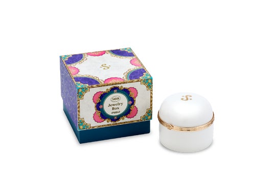 淡いクリーミーホワイトのセラミックをアンティークゴールドが彩るSABONオリジナルデザインのジュエリーボックス。