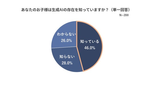まず、「あなたのお子様は生成AIの存在を知っていますか?」と聞いたところ、46.0%が「知っている」と回答しました。
