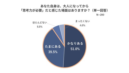 - 9割以上の親が大人になってから「思考力が必要」だと感じた場面があると回答。