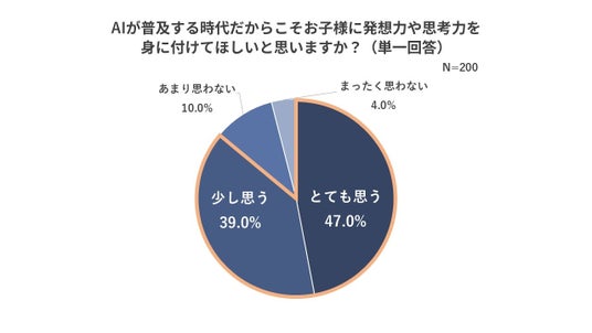 - AIが普及する時代だからこそ子どもに発想力や思考力を身に付けてほしいと思っている親は8割以上。