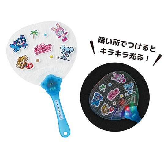 光って楽しい!オリジナルデコうちわナルミヤキャラクターズのシールを貼って、