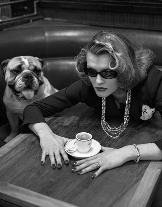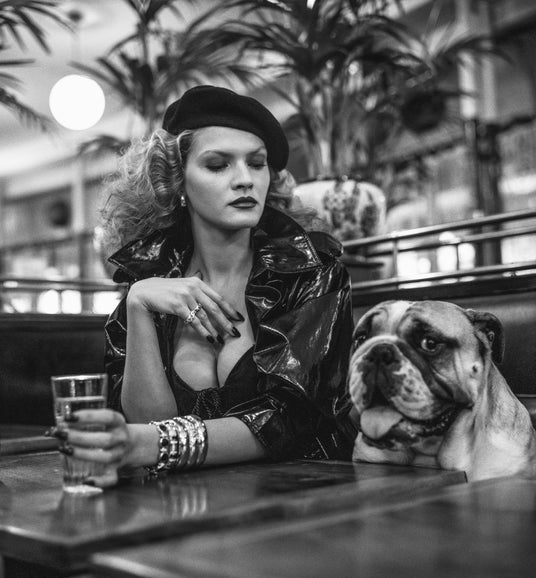会場では、訪れた人々をジュエリー広告の常識を覆したニュートン独自のアプローチで迎えます。バーでくつろぐサングラスをかけた女性の手首には1つのブレスレット、テーブルにこぼれ落ちるようにネックレスが広がる演出や、手首を飾る複数のブレスレットのクローズアップなど、印象的なビジュアルが展開されます。彼のレンズがとらえたのは、単なる装飾品ではなく、自立の表明であり、他者から与えられたステータスシンボルではなく、自分のためにジュエリーをまとう主人公の姿です。