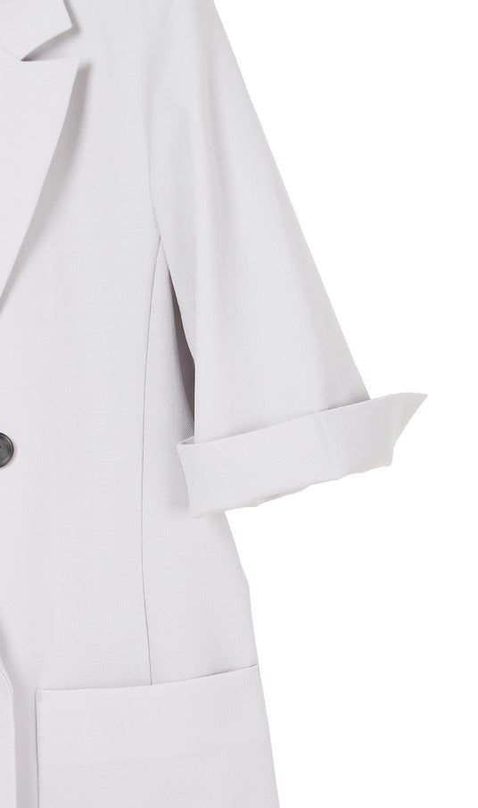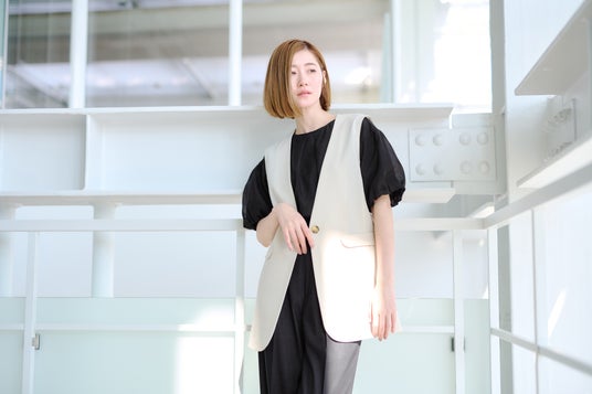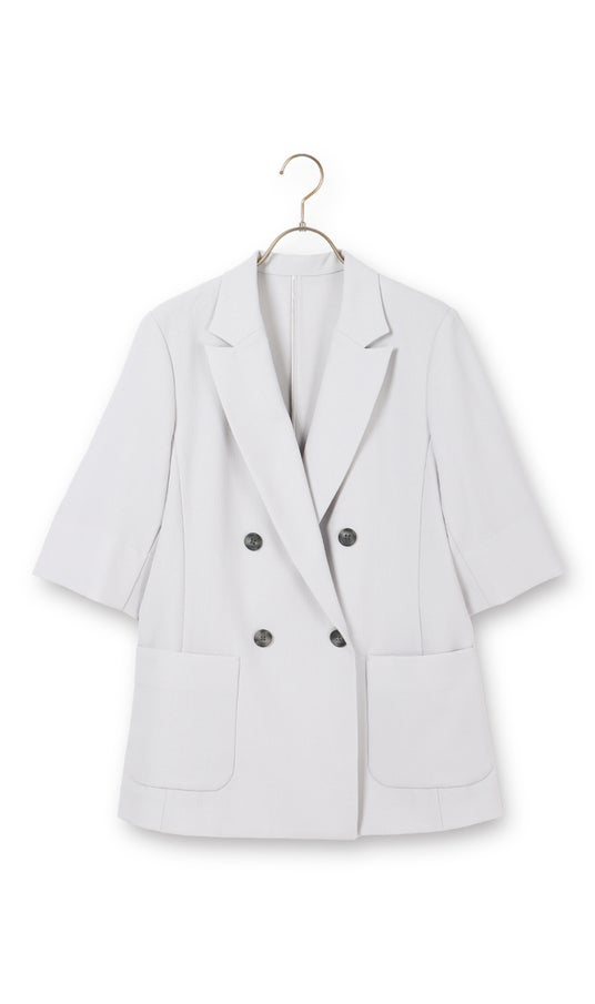 夏の長期化や記録的な暑さを背景に、1枚で着映えするデザイン性のあるトップスが市場にも増えてきています。一方で、オフィスではジャケットを着用したい、日焼け対策として1枚羽織りたいなどの要望もあがっています。今回の半袖ジャケットは、清涼感を出すため麻調素材を採用した他、涼しくかつ、腕が細く見える長さになるよう袖丈を調整しました。カラーは、グレーとアイボリーの2色で、お手持ちのアイテムとも合わせやすい、夏らしい淡い色合いを用意しました。アイボリーは、ジレも用意していますので、ぜひ気分やシーンに合わせて着回し、コーディネートを楽しんでいただきたいです。