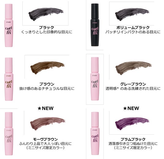 韓国コスメブランド「エチュード」は、24時間*¹ ずーっと上向き束感カールキープする『カールフィックスマスカラ (ミニ) 』の新色を2025年7月1日(火)より順次発売いたします(数量限定発売)。