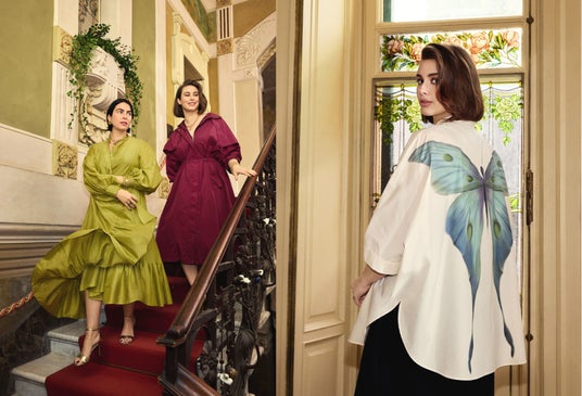 カプセルコレクションのキーワードである「軽やかさ」は、テレサが少人数の友人とともに制作したエディトリアルイメージやビデオにも表現されます。コレクションの舞台となったイタリア北西部の都市パラビアーゴにある、美しいヴィラ“ヴィラ・イーダ・ランプニャーニ”にて、ファッション界のエキスパートのアレクサンドラ・ヴァン・ホッテ、アーティストのマテテ・マルティーニ、ジュエリーデザイナーのベソニー・ヴァーノン、モデルのガブリエラ・ジョヴァナルディと共に出演し、エフォートレスな自然体のエレガンスで、コレクションのムードを体現しています。