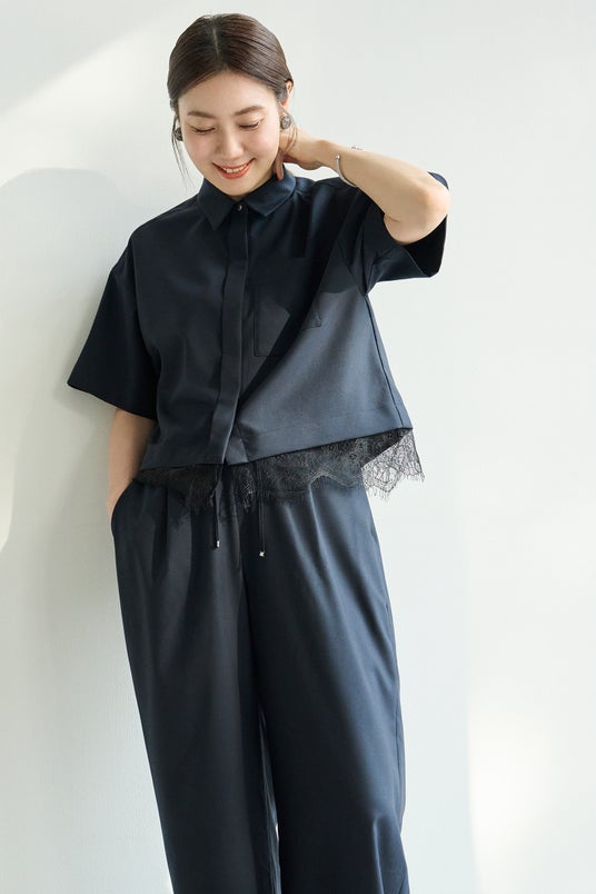 【TAEKO HIGASHIHARA × LAUTREAMONT】 レースコンビシャツ ¥23,100 (税込) color : ネイビー / ホワイト / グレー size : 9号