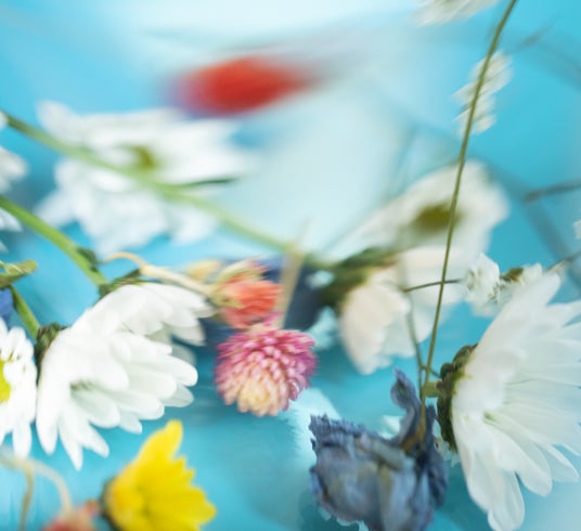 製品のメインビジュアルは、店頭やSNSなどで、プロダクトの魅力を伝えてくれます。今回は、サマーブーケの香りをイメージし、可憐でありながらも凛とした印象と、夏らしい清々しさを表現するために、爽やかな色合いの花を集めて撮影しました。