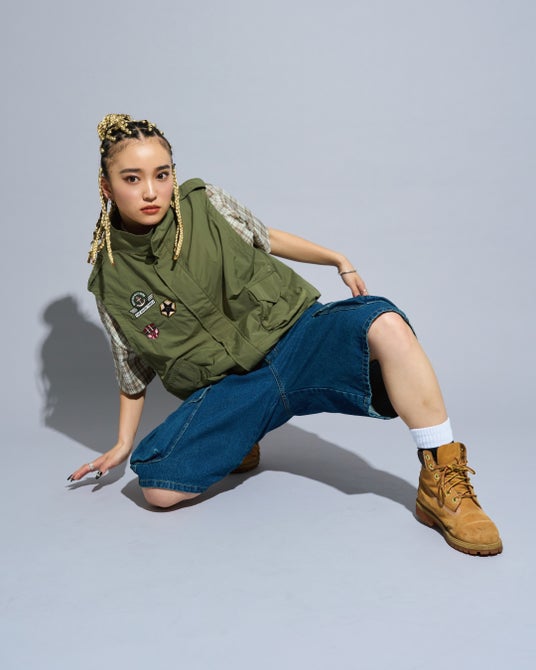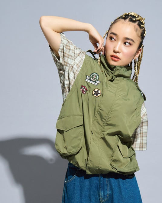 ベストに合わせてもストリート感のあるスタイリングに。