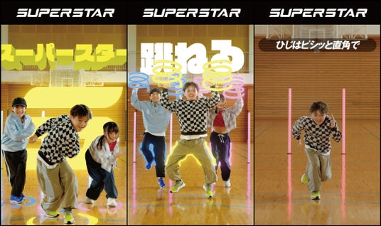 プロモーション動画では振付に〈振付稼業air:man〉を起用。正しい走り方のポイント(前傾姿勢や肘の角度など)を随所に取り入れたオリジナルダンスは、SUPERSTAR(R)ならではの跳ね感やスピード感を視覚的に表現する演出効果とともに、軽快かつ力強い世界観を体現しています。サウンドボーカルにはデジタルアーティスト〈星宮とと〉さんが参画。パフォーマンスを披露するのは、ムーンスター本社のある福岡県久留米市のダンススタジオ「スタジオMJ」に通う小学生3名。子どもたちの元気あふれるダンスとともに、SUPERSTAR(R)の魅力をぜひご覧ください。