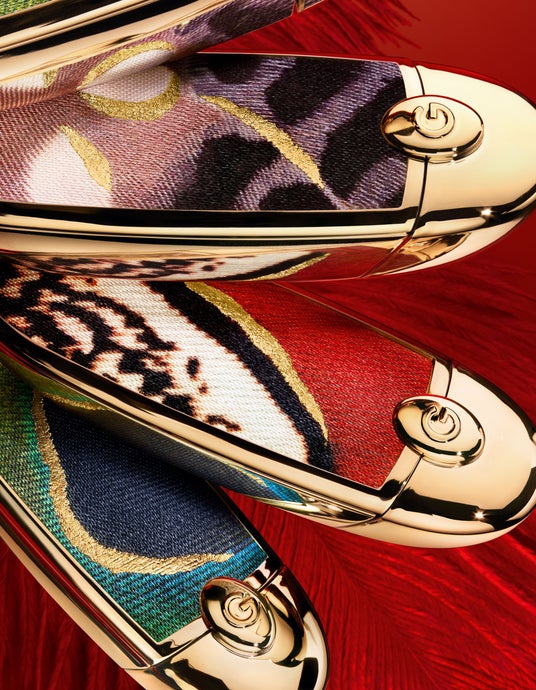 無比の才能と注目すべき数々のコラボレーションにより、オートクチュールの世界で名声を集める同スタジオが生み出したのは、マットブラックのエレガントなケース。ゴールドのチェーンと煌めくレッドのビーズが絡み合う羽の刺繍をあしらった、比類なきジュエルケースが誕生します。このケースは、〈ルージュ ジェ〉が打ち出した3種のアイコニックなシェードと共に限定セットとして登場します。