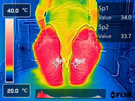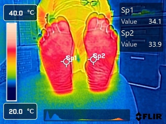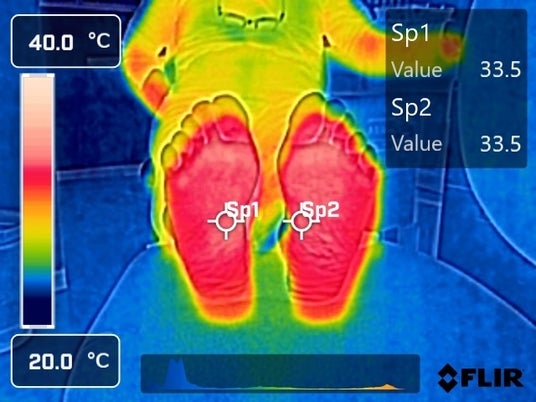 ■温活ソックスと通常靴下の足裏温度のサーモグラフィー比較