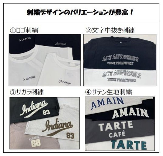 <刺繍> キレイめ(ロゴ、文字中抜き)、カジュアル(サガラ、サテン生地)