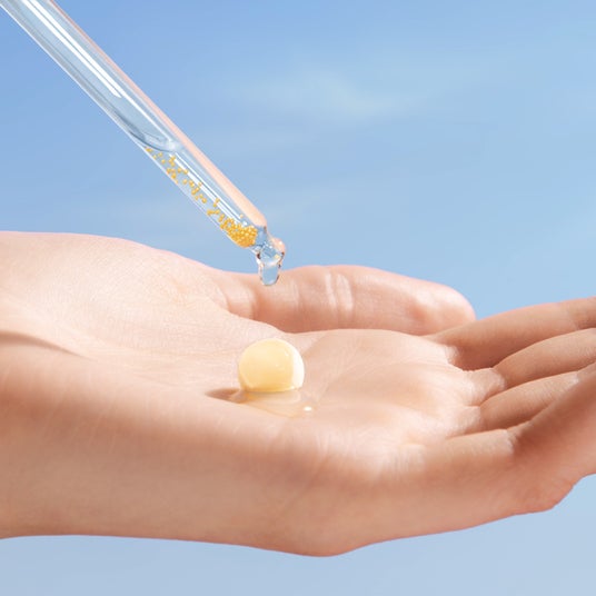 〈アベイユ ロイヤル ビー ラボ ショット〉の特徴であるハニービーズが携えているのは、単なる目新しさだけではありません。これは、エイジングケアの心強い味方でありながら、配合が困難な高濃度ビタミンC*²をはじめとする有用成分を最大限*¹に凝縮することを叶える形状なのです。〈ビー ラボ ショット〉と〈ウォータリー オイル セロム〉を組み合わせることで、〈アベイユ ロイヤル〉シリーズが秘めたパワーをより一層強化します。