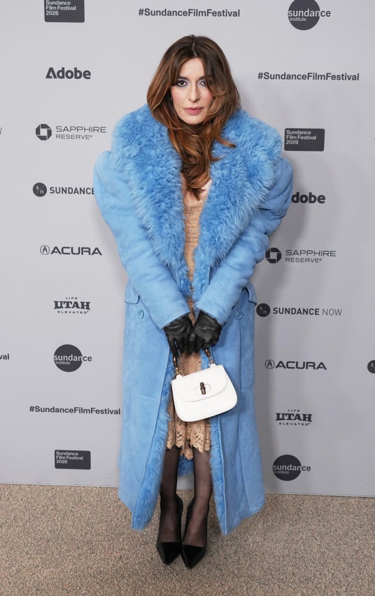女優のサブリナ・インパッチャトーレ(Sabrina Impacciatore)は、1月25日にユタ州パークシティのThe Rayで開催されたサンダンス映画祭にて、映画『Gail Daughtry and the Celebrity Sex Pass』のプレミアに登場。「La Famiglia」コレクションのライトブルー シアリングコートにベージュのレースドレス、ブラックレザー パンプスと、ホワイトレザーのバッグ〔グッチ バンブー 1947〕を合わせました。