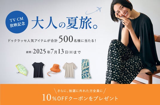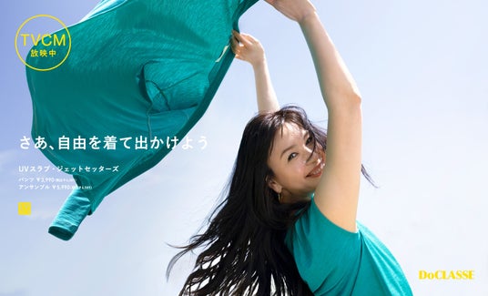 婦人服・紳士服の製造販売ブランド、株式会社 DoCLASSE(ドゥクラッセ)は、夏の大ヒット名品「UVスラブ・ジェットセッターズ」にフューチャーした新テレビCMを2025年6月7日(土)より放映いたします。放映に伴い、特設WEBページの開設やプレゼントキャンペーンなどのコンテンツを展開していきます。