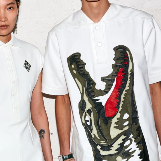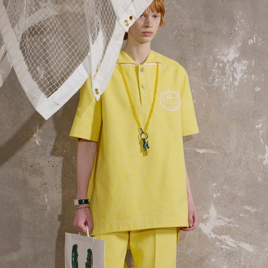 ペラジア・コロトロスは、アイコンやその象徴性、それが年月とともにどう進化してきたかを探求し続け、メゾンの象徴的なロゴであるラコステのワニをアーティスティックなプリズムを通して遊び心たっぷりに再解釈しています。触覚的な表現として、ブークレジャカードや繊細なニットに施されたレーストリム、抽象的な拡大プリントが、流れるような夏のシャツやシルクのパジャマ、ハイテクトラックスーツの微細なモチーフと対比をなしています。
