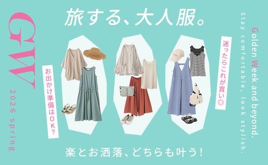 待ちに待ったゴールデンウィーク!久しぶりの遠出や、家族との穏やかな休日など、予定を立てるだけで心が弾む季節ですね。でも、いざ荷造りを始めると「移動中にシワにならない服は?」「写真に写るから体型もカバーしたい」と、着ていく服に悩んでしまうことも多いはず。本特集では、大人の女性が「失敗しない旅スタイル」を叶えるための厳選アイテムをご紹介します。長時間の移動も楽ちんなストレッチ素材、日差しから肌を守るUV対策アイテム、そして少ない荷物で印象を変えられる着回しアイテムまで。春らしい差し色やレース、刺繍のディテールを添えて、今のあなただからこそ似合う「気取らない華やかさ」を詰め込みました。