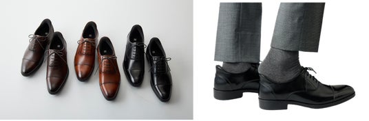 ビジネスウェアの専門店として長年培ってきたドレスシューズへのこだわり、品質はそのままに、着脱動作をスマートにする革新的なハンズフリー機能を搭載した革靴を提案します。