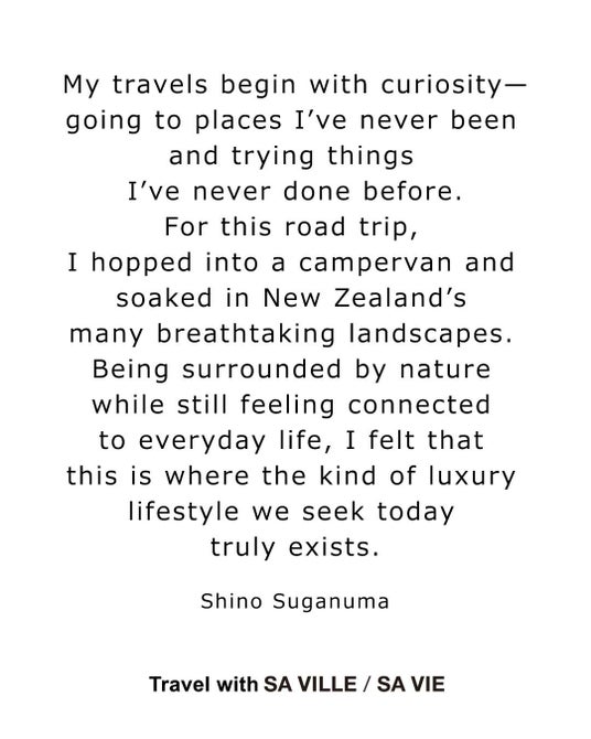 「大自然に身を置きながらも、日常の延長線上にある暮らしが共存する--そんな“ポストラグジュアリー”が息づく場所」と語ってくれた2週間のニュージーランド旅。SA VILLE / SA VIEの服とともにぜひご覧ください。