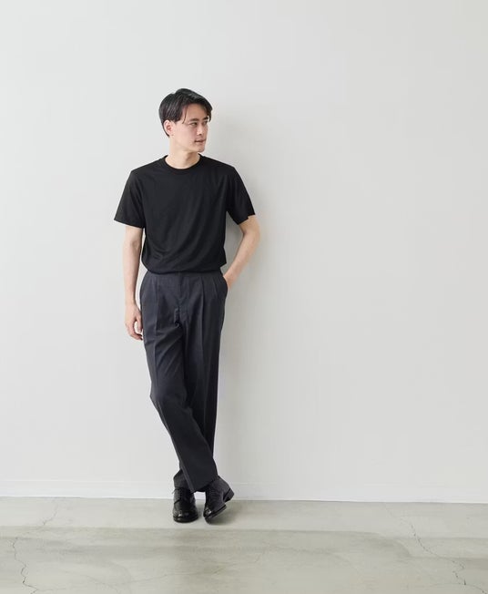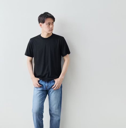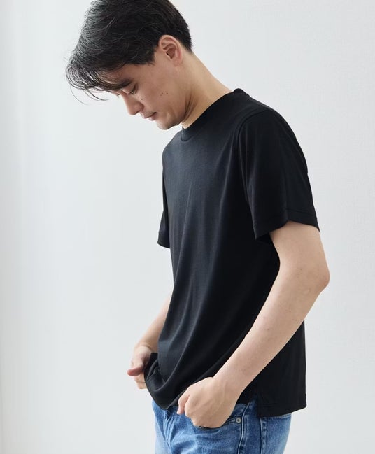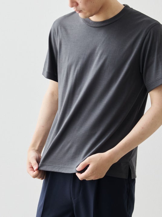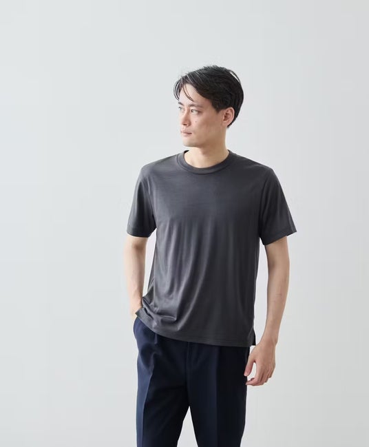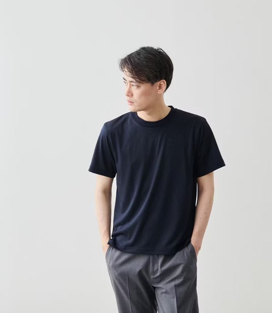 宇宙船の船内服にも採用されるほどの超高機能ウール糸「NIKKE AXIO(R)(アクシオ)」を使用した、高級感と快適性を完全に両立させたTシャツ。