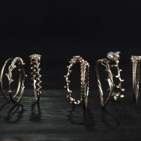 さまざまな宝石の形や色を組み合わせたサンクルールは、手元に小さな物語を添えるような存在です。リングに映し出された秋の風景に思いを馳せながら、お気に入りの一本を見つけてください。