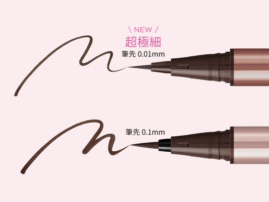 ◆メイクトレンドによるリキッドアイライナーの多様化するニーズに応え、筆先わずか0.01mmの超極細筆が新登場。繊細な筆使いが求められる超極細タイプでも、ラブ・ライナーならではの描きやすさで、狙い通りの極細ラインを実現します。