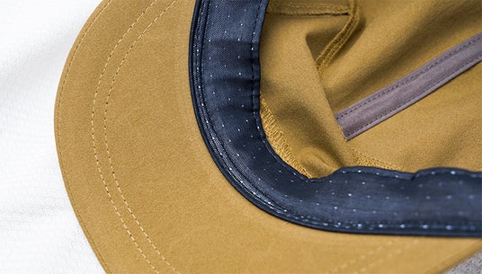 汗がたまりやすい額や頭囲ぐるり(ビン革)に「ドライレイヤー」生地を用いました。