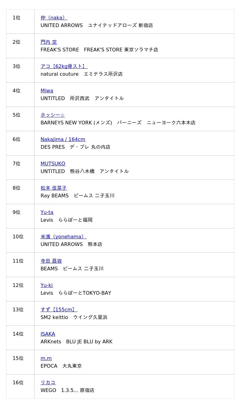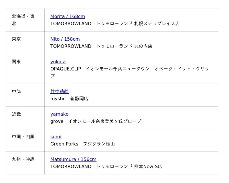 アパレル部門のみで開催の全国エリアNO.1は、トゥモローランドが北海道・東京・九州で1位に。東京エリアNO.1のトゥモローランド Nito / 158cm さんは、トータルのポイント獲得数がトップの43万ポイント以上を獲得する結果になりました。
