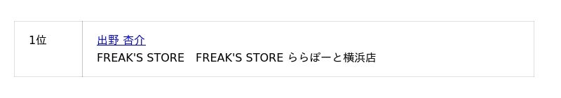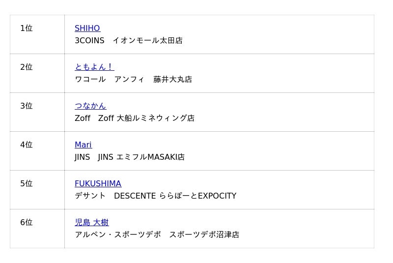 全国エリア別ランキング通過者 ※アパレル部門のみ