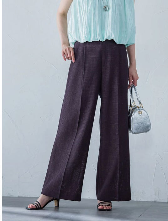 ストレートワイドパンツ今年も注目のカラミ素材を使用したストレートワイドなパンツ。