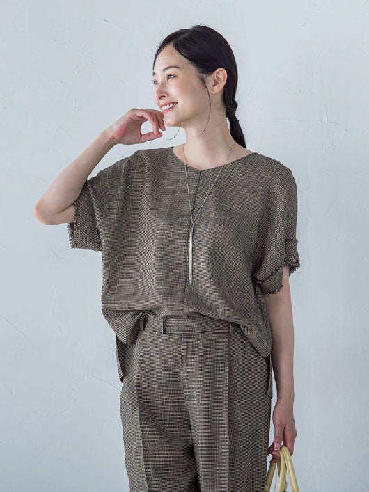 夏を品よく着こなす大人服。通気性に優れたカラミ素材が暑い季節も心地よく、きちんと見せを