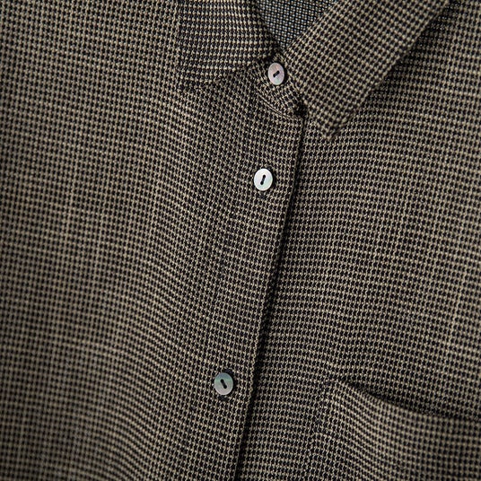 クロップドシャツボトムとのバランスが取りやすい、クロップド丈シャツ。メッシュのような素材感なので涼しく、かつ透けにくい。