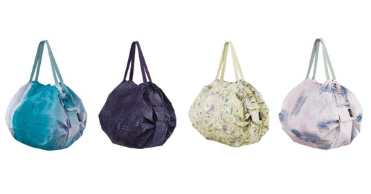 「Shupatto コンパクトバッグ M リサイクルコレクション」は、一気にたためる機能はそのままに、環境に配慮し、廃棄プラスチックから作られた再生素材を100%使用した専用の生地を使用。また、自然へのリスペクトを込めたデザインテーマを設定し、2022年秋冬より、半期に1度、海外限定で新柄を発表してまいりました。