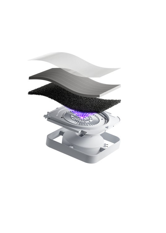 内蔵のUVCライトモジュールが、照射によって除菌を行います。細菌やウイルスを除去し、清潔で心地よい空気環境を整えます。高品質な円柱状活性炭が、ホルムアルデヒド、トルエン、TVOC(総揮発性有機化合物)などの有害ガスを効果的に除去し、同時に気になるニオイも吸着します。