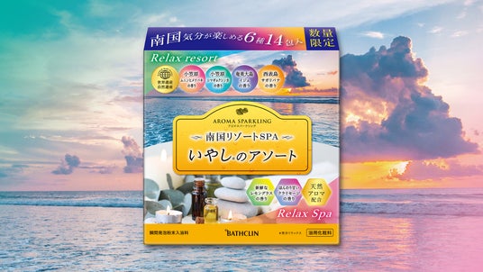 株式会社バスクリン(本社:東京都千代田区 社長:三枚堂正悟)は、香りが湯面ではじけて広がり、全身で香りを楽しめる入浴料「アロマスパークリング」シリーズから、南国リゾートでの大自然と贅沢(ぜいたく)なホテルステイをテーマにした「アロマスパークリング 南国リゾートSPA いやしのアソート」を6月25日(水曜日)より数量限定で発売いたします。本品は、自然遺産に生育する固有植物の香りをイメージした入浴料を含む、6種類の香りが楽しめるアソートセットです。