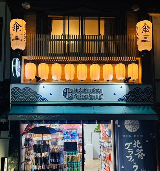 『日本のカルチャーを世界へ』というビジョンのもと、簪(かんざし)や和傘・和柄傘、箸等の和小物を全国で複数展開する株式会社和心(東京都渋谷区、代表取締役社長:森 智宏、東証グロース:9271)は、和柄傘ブランド『北斎グラフィック』を、兵庫県の人気温泉地である城崎温泉にて、2026年4月29日(水)にグランドオープンいたしました。