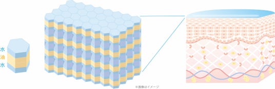 密閉力が高いハニカム構造かつ、水と油のミルフィーユ層のベールが肌を密閉。