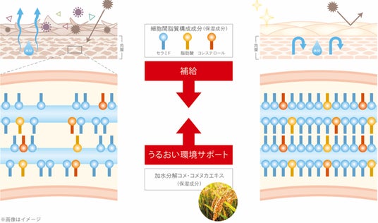 細胞間脂質成分に着目。独自開発原料「加水分解コメ・コメヌカエキス*」