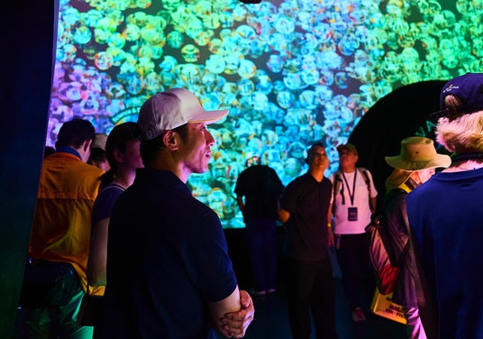 その後は、スイス大使館支援によるスイスパビリオンツアーを実施。「ハイジと共に、テクノロジーの頂へ」というテーマのもとアルプス文化と最先端技術が共存するスイスの姿を表した館内で、室屋氏とともに没入型のインタラクティブなパビリオンを体感いただくものとなりました。