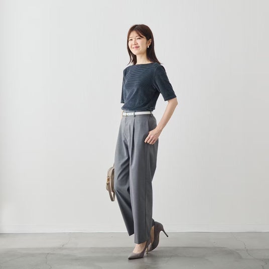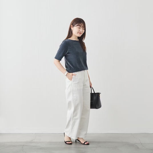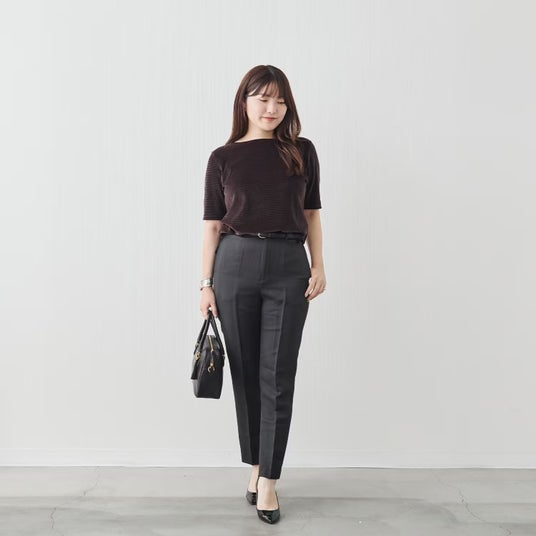 普通のTシャツよりもきちんと見えるので、オフィススタイルにもぴったり。