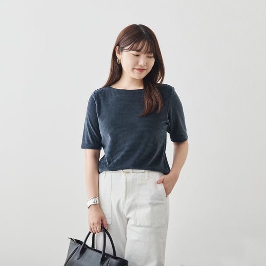 気になる二の腕をカバー!スッキリ見えにこだわった五分袖
