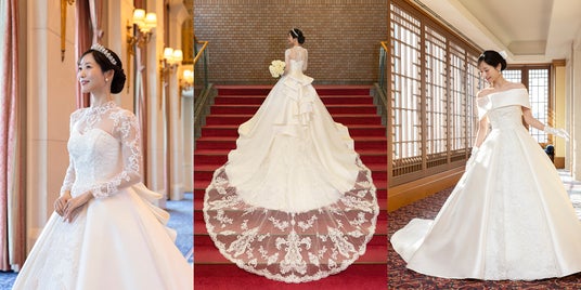 最大の魅力は、花嫁様の美しさを多面的に引き立てるスタイルチェンジです。厳かな挙式から華やかな披露宴まで、移ろう時間とともに装いの印象を変えながら、その瞬間にふさわしい佇まいを叶えます。