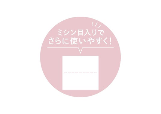 75mm×85mmのスクエア型シートで、シートを半分に切って使えるミシン目入り。