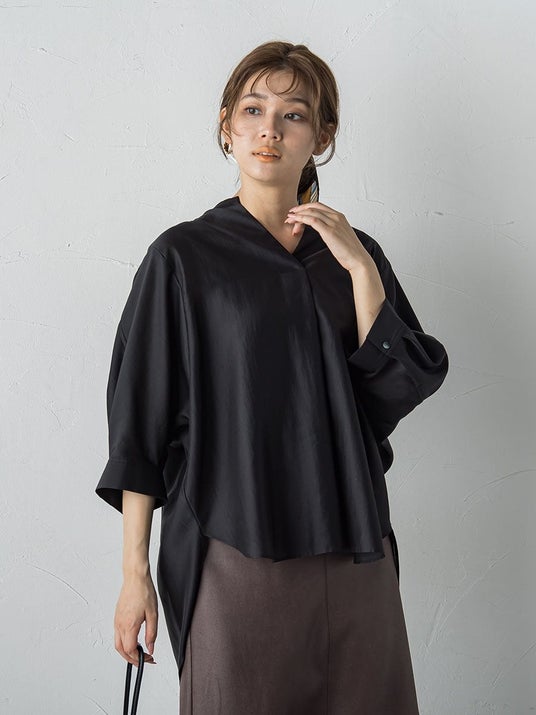item01_Skipper Blouse上品な光沢と透けすぎないセミシアーが特徴のブラウス。 ドルマンスリーブでこなれ感と、ゆったりしたシルエットで涼しく着られる1枚です。